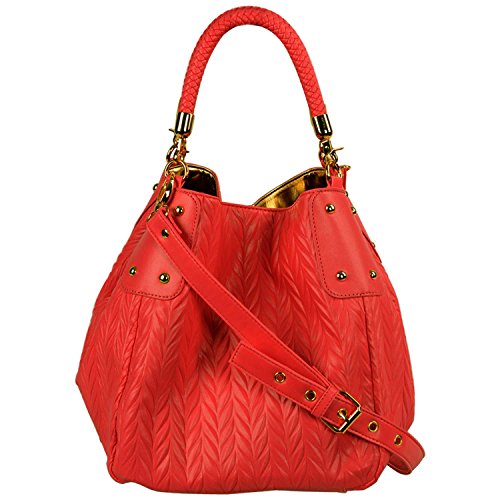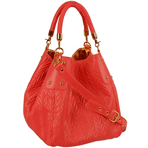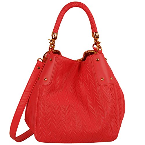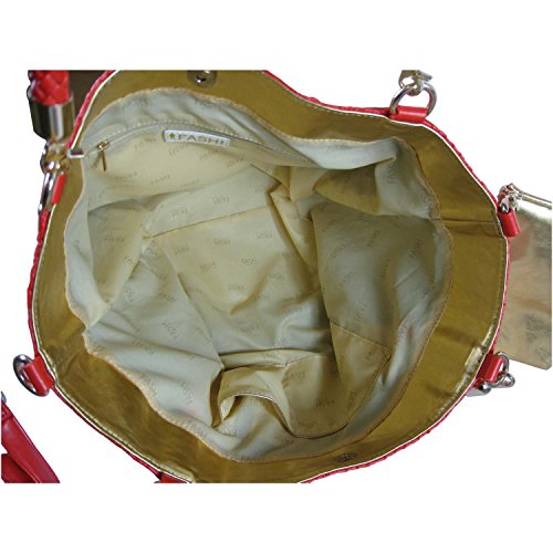 FASH Classic Tote Style Cross Body Handbag with Golden Pouch,Red,One Size