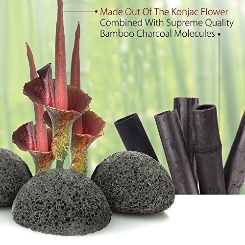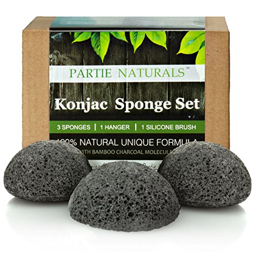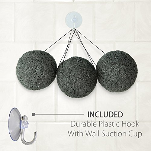 KONJAC SPONGE 3-PACK - Our Partie Naturals Konjac Facial Sponge Includes 3 Black Activated Bamboo Charcoal hemisphere sponges and Suction Hook. If you do not have acne prone skin, use our charcoal sponge once a week for an even deeper cleaning and removing any toxins and impurities. With a radiant complexion. It is extremely soft and gentle for everyday skin care. Great for all skin types.