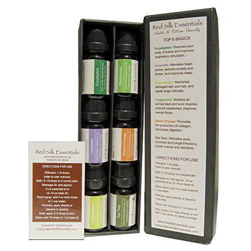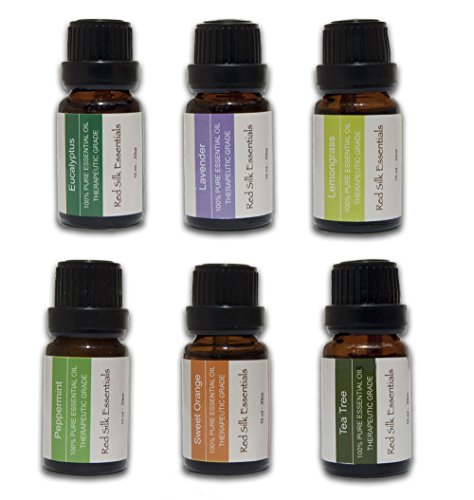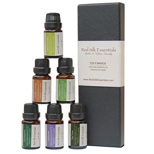 Aromatherapy Top 6 100% Therapeutic Grade Essential Oils Gift Set, 10 ml each (Lavender, Tea Tree, Eucalyptus, Lemongrass, Orange, Peppermint)