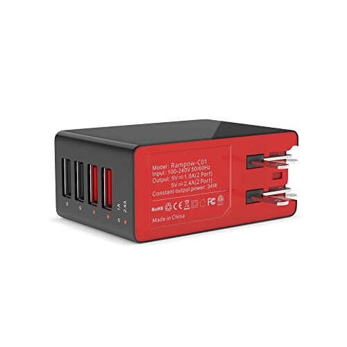 34W/6.4A output, 4-port wall charger provides the fastest possible charge - safely - up to 2.4 amps per port for any chargeable USB device. A charger that takes care of your time as well as your batteries.