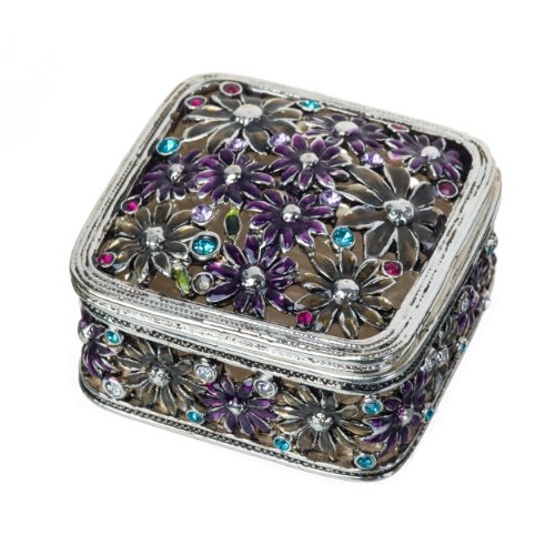 Prinz 2 by 2 by 1.5-Inch Floret Jewelry Box, Antique Silver Finish with Enamel
