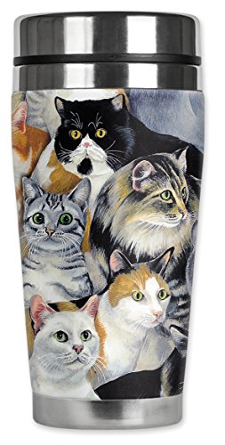 Mugzie 174-MAX "Just Cats" Stainless Steel Travel Mug with Insulated Wetsuit Cover, 20 oz, Black