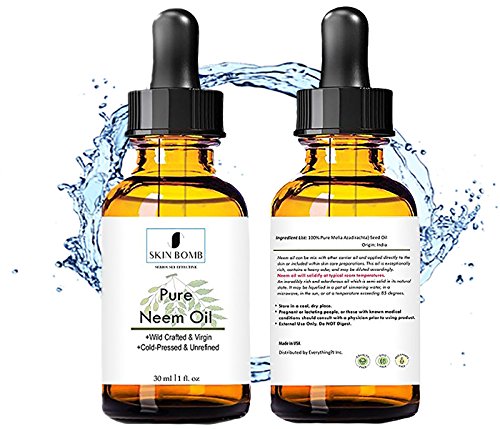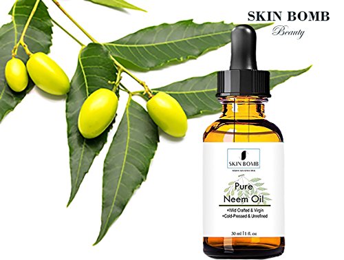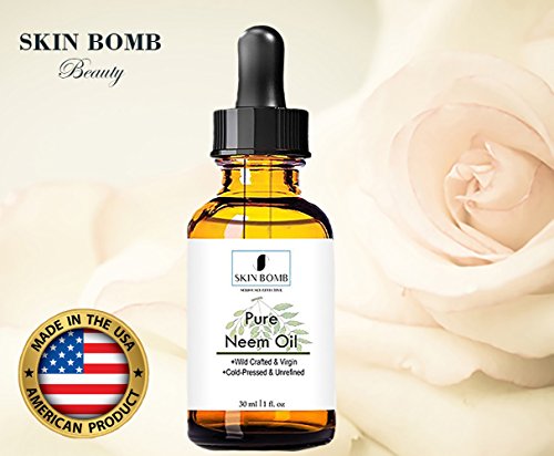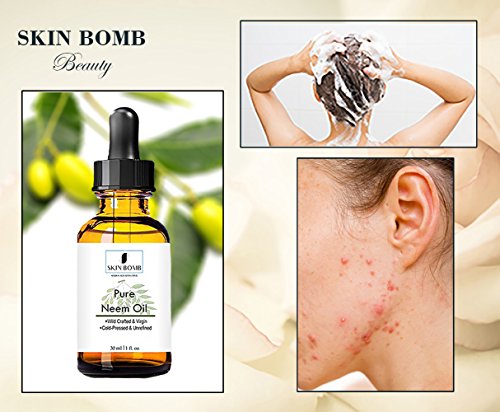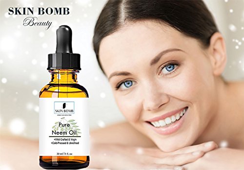 Skin Bomb's NEEM OIL , 1 oz - 100% Pure, Cold Pressed - All Natural For Hair, Skin & Nails