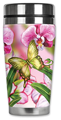 Mugzie 451-MAX "Green Butterfly" Stainless Steel Travel Mug with Insulated Wetsuit Cover, 20 oz, Black