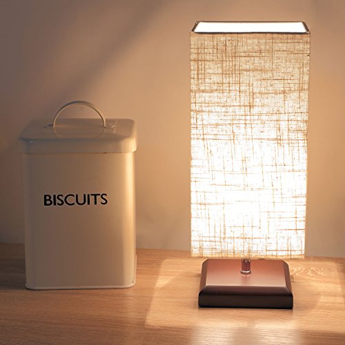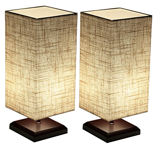 Ewalite Minimalist Romantic Solid Wood Table Lamp With Flaxen Fabric Shade Bedside Desk Lamp For Bedroom, Dresser, Living Room, Baby Room, College Dorm (Square) Set of 2 PCS
