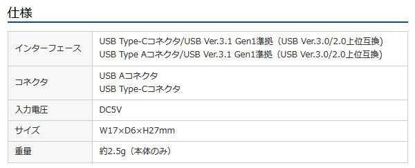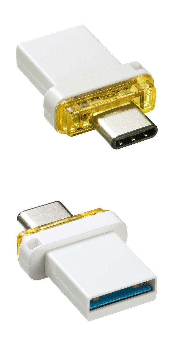 | USB AコネクタとType-Cコネクタ付きコンパクトUSBメモリ。 |
