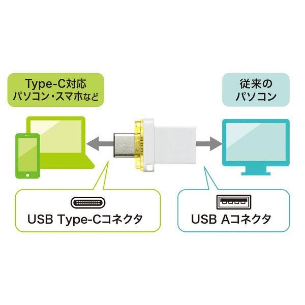 USB Type-Cコネクタが付いたUSBメモリです。USB3.1 Gen1(USB3.0)に対応しています。外したキャップが後ろに取り付けられるので、紛失する心配がありません。USBポートに挿すだけですぐ使えます。 |