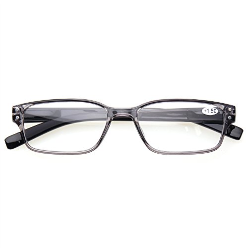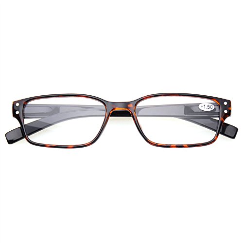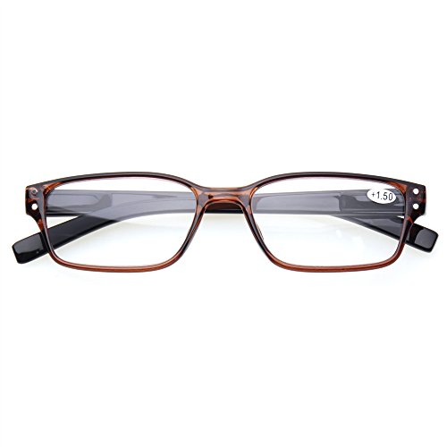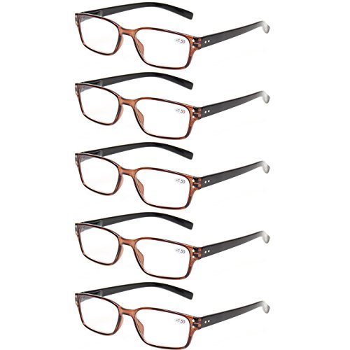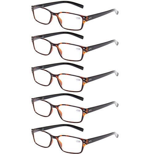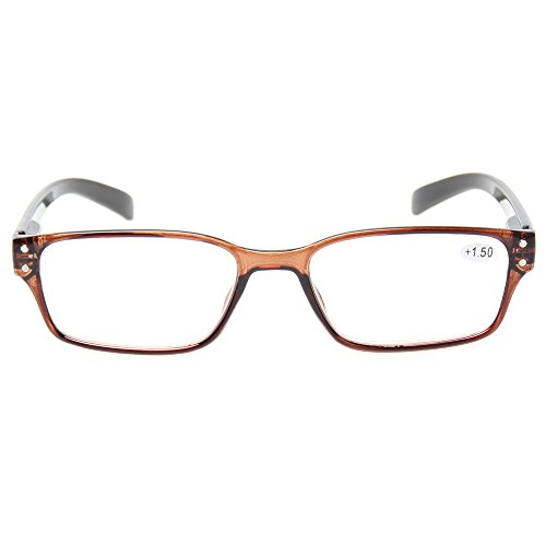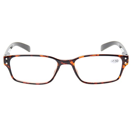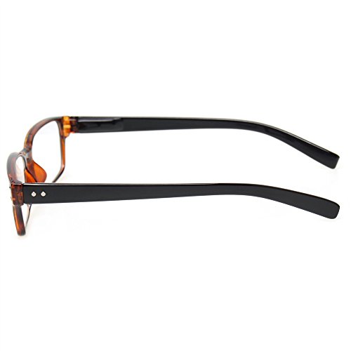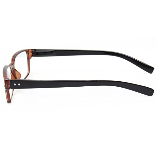 Product Description Specification: Width of the forehead frame :135mm/ 5.31" (approx.) Lens Height:30mm/ 1.18" (approx.) Lens Width : 52mm/ 2.05" (approx.) Leg Length :140mm/5.51" (approx.) Color:Gray Brown Blue Demi Black Please specify the frame color and lens strength when pay for this.Thanks! Classic-shaped frames, look good on any face. help glasses fit your face Material : PC Frame, AC Lens,Head Size:Narrow to Medium Diopter available: 100 150 200 250 300 350 400 Other diopter: 125 175 225 275 450 500 600 Note: Due to the difference between different monitors, the picture may not reflect the actual color of the item. Thank you! Size for manual measurement, there may be a 0 to 1 cm error, belongs to the normal phenomenon. Package includes: 5 x Reading Glasses