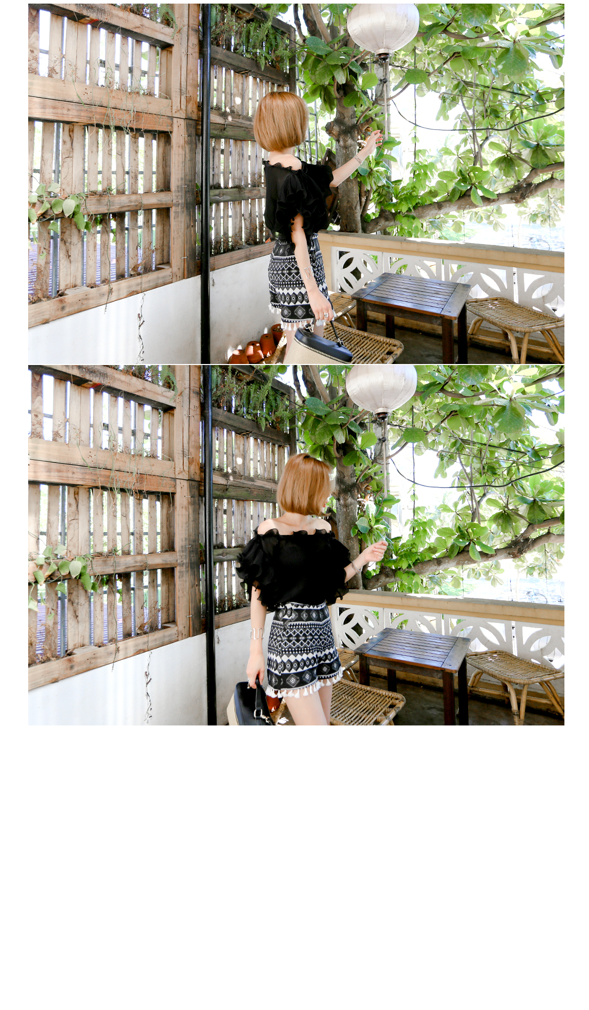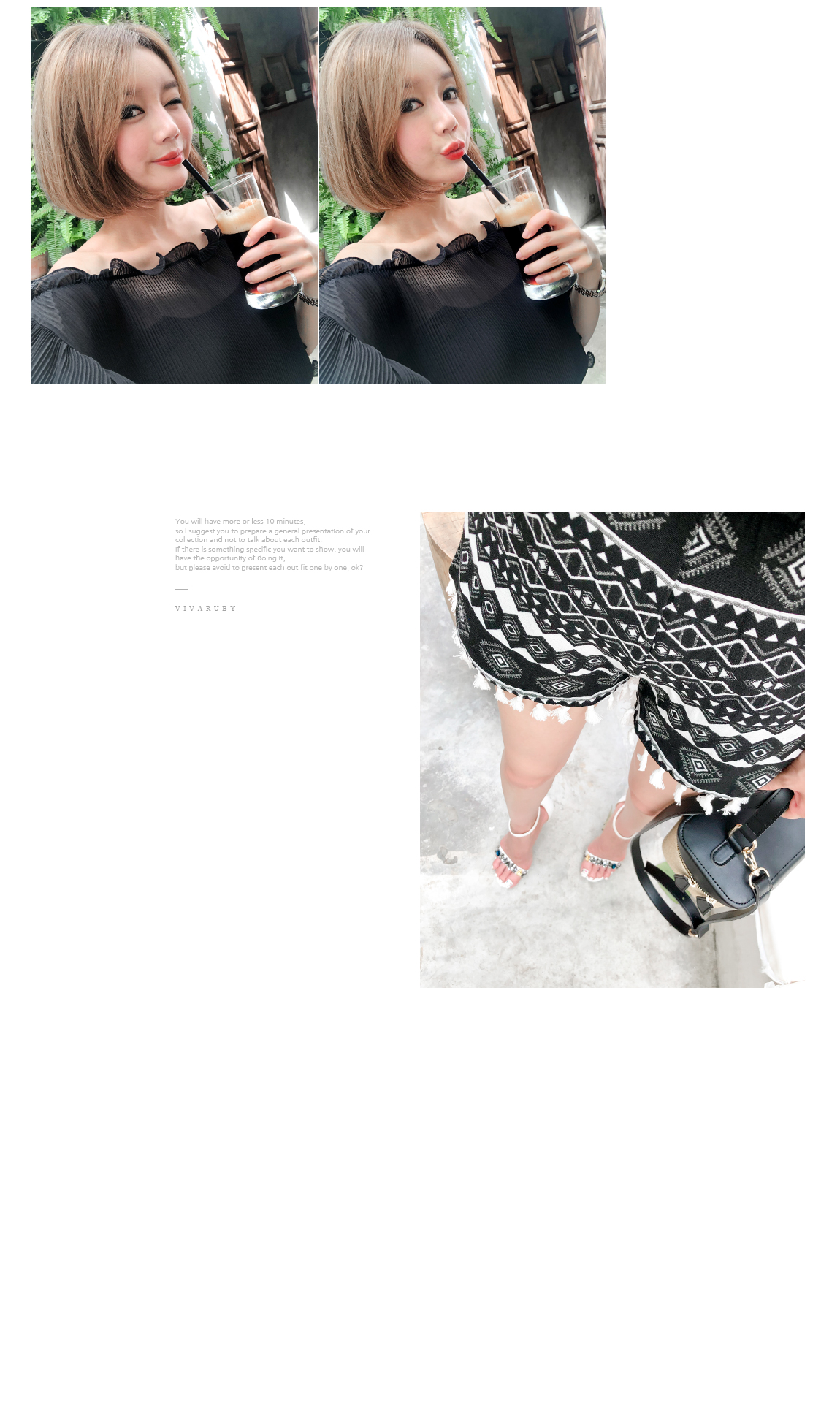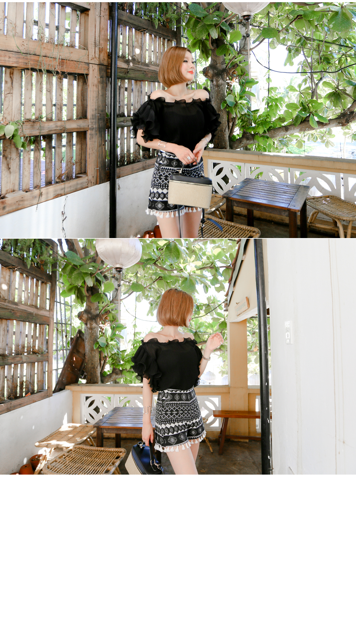 밑단은 태슬로 포인트를 주었으며 에스닉한 분위기를 연출해 준답니다