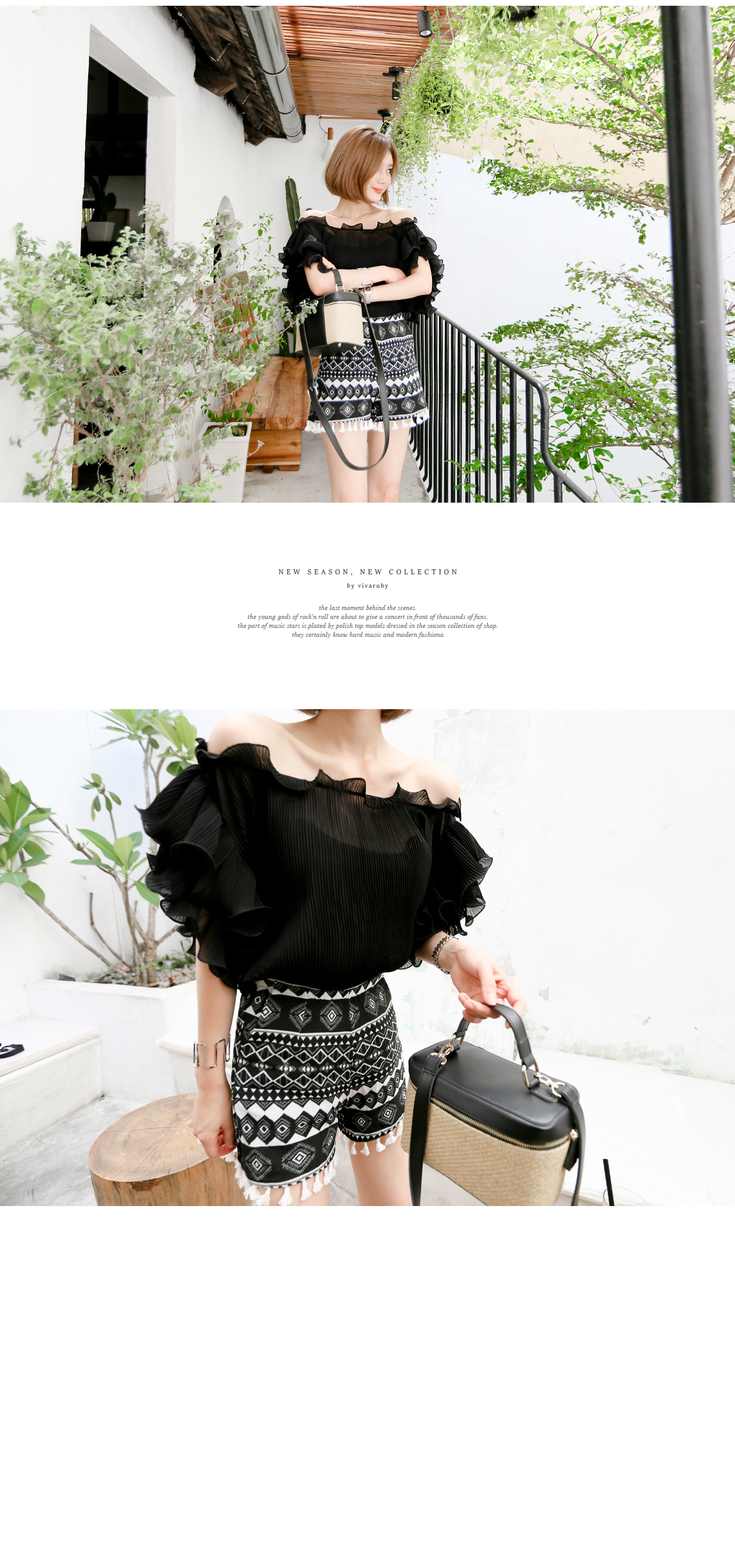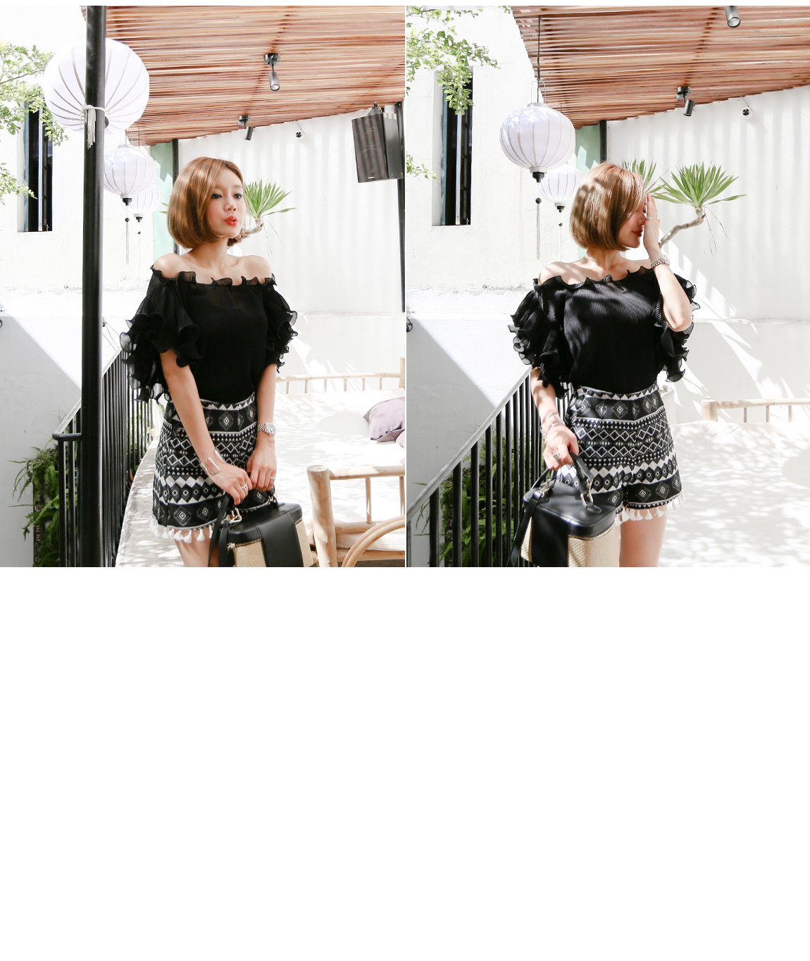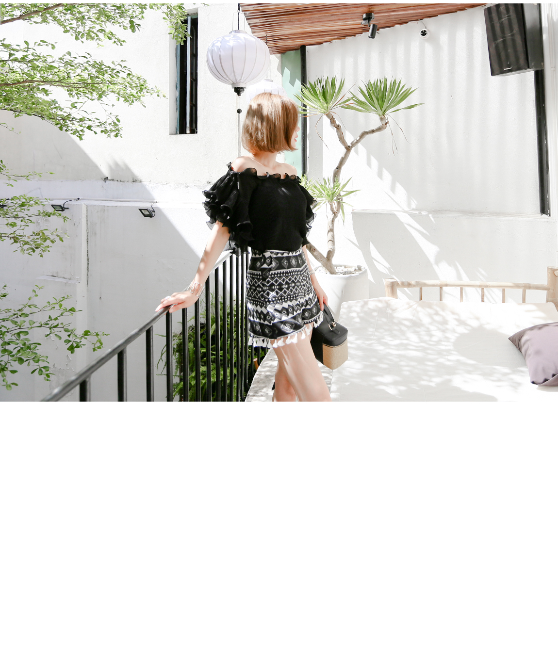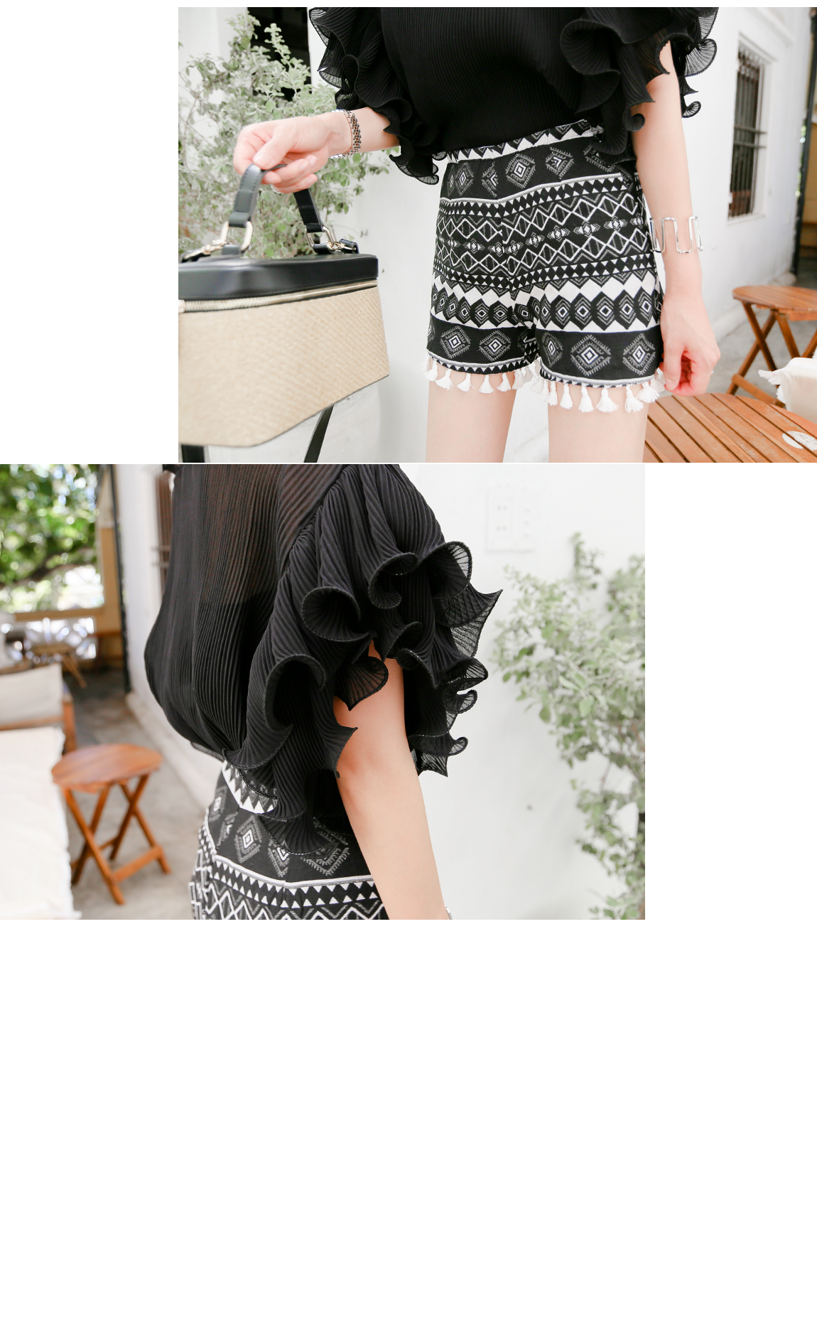 밑단은 태슬로 포인트를 주었으며 에스닉한 분위기를 연출해 준답니다