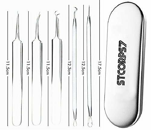- Stainless steel: All tools of blackhead remover kit are made from Stainless steel.You can safely sterilize all tools without them corroding or reacting negatively,Blackhead remover tool