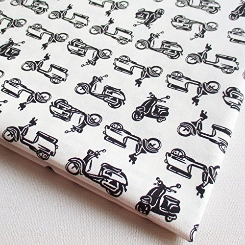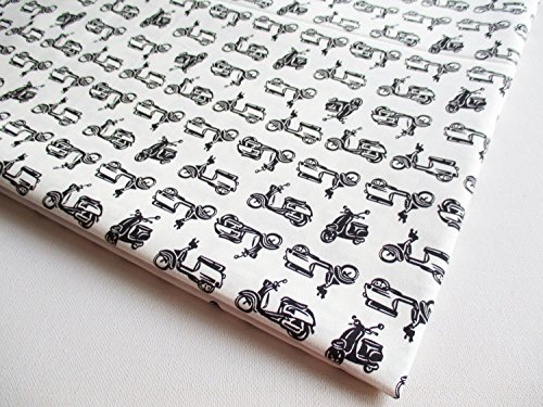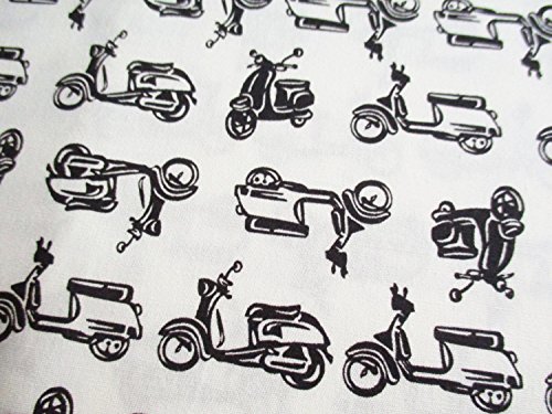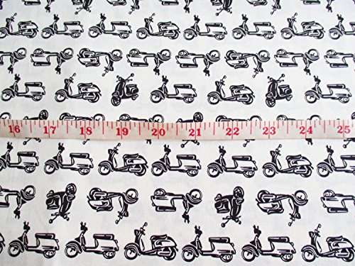 Vespa Fabric Car, Motorcycle, Black and White Scooter on White By the Yard (CT528)