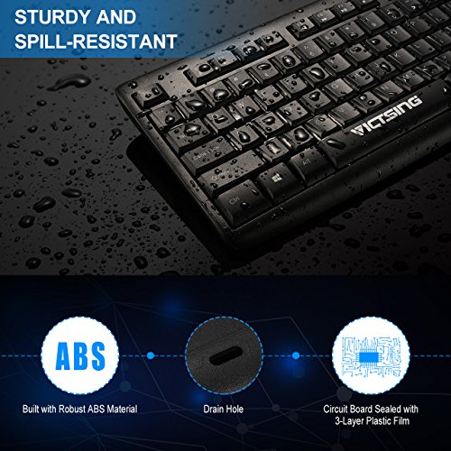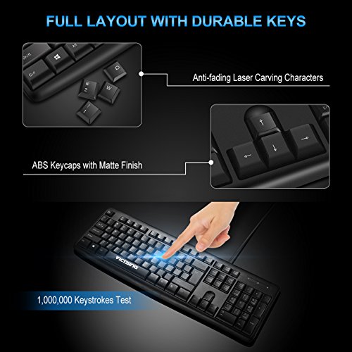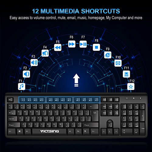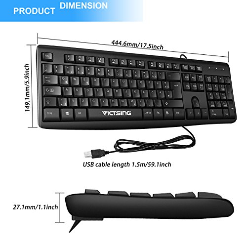 Combining sleek design with standard keyboard layout, VicTsing 104-key wired keyboard makes comfortable and effortless typing possible!
