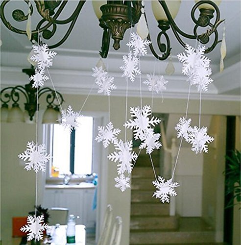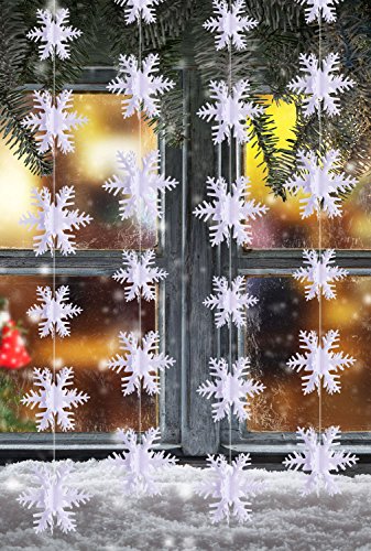 - Pack of 2 string snowflake hangings,each one has 12 snowflakes