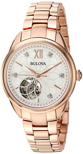 Bulova Women's Automatic Stainless Steel Casual Watch, Color:Rose Gold-Toned (Model: 97P121)
