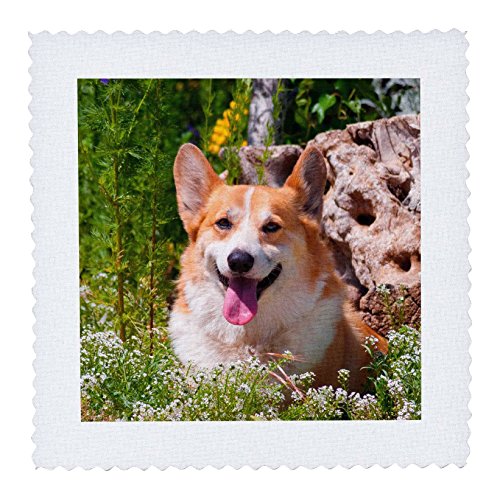 3dRose Pembroke Welsh Corgi Sitting In Garden. - Quilt Square, 8 by 8-Inch (qs_209740_3)