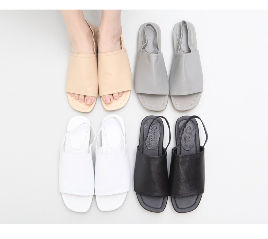 심플하면서도 유니크하고 세련된 느낌의 매력넘치는 리얼가죽 슬링백 샌들입니다