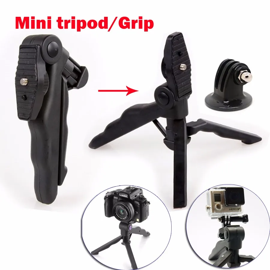 Specification: 1) Total Length: 16cm when folded, 9.5cm long when opened 2) Tripod Length: 10cm 3) Weight: 133g 4) Max Load Capacity: 2kg (not suitable install the camera with tele lens) 5) Material: Plastic Perfect addition for filming all your action sports. Package Includes: 1 x MRT07 mini Tripod 1x Tripod mount adapter for Gopro Pole Mount is compatible for all Gopro cameras and housings |