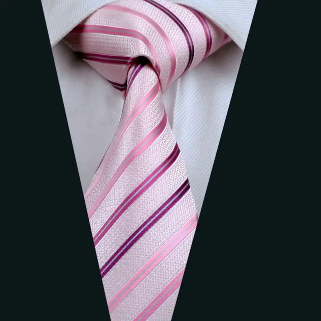 2016 새로운 남성 넥타이 100% 실크 핑크 스트라이프 자카드 짠 실크 넥타이 Gravata 남성 정장 웨딩 파티 비즈니스 LD-228