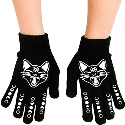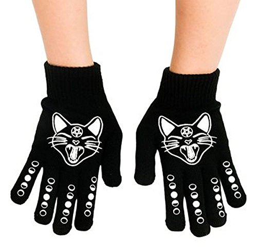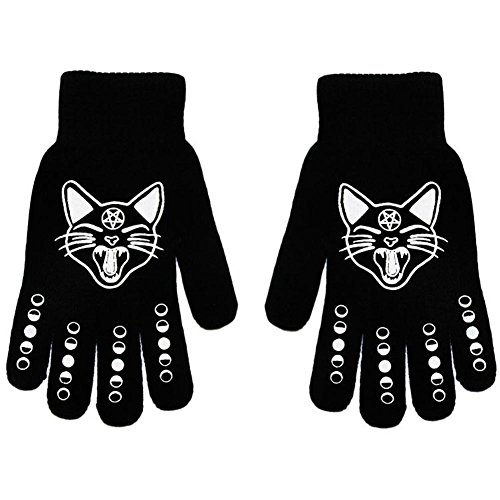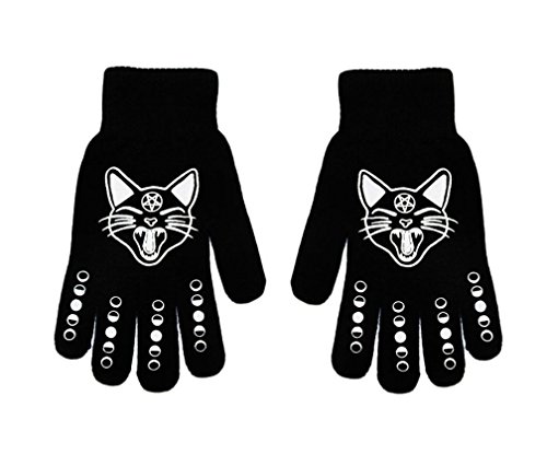 Studio : Too Fast Publisher : Too Fast Binding : Apparel Product Description Witchy " Cat " Gloves Show off your inner witch with these witchy black cat phases of the moon gloves. Features: -Black knit gloves -Witchy cat printed on hands phases of the moon printed on fingers -Artist Clare Dutton -70% Acrylic 30% Spandex -One size fits most women and children 14 Fabulous idea to accessorize your gothic ensembles. 0