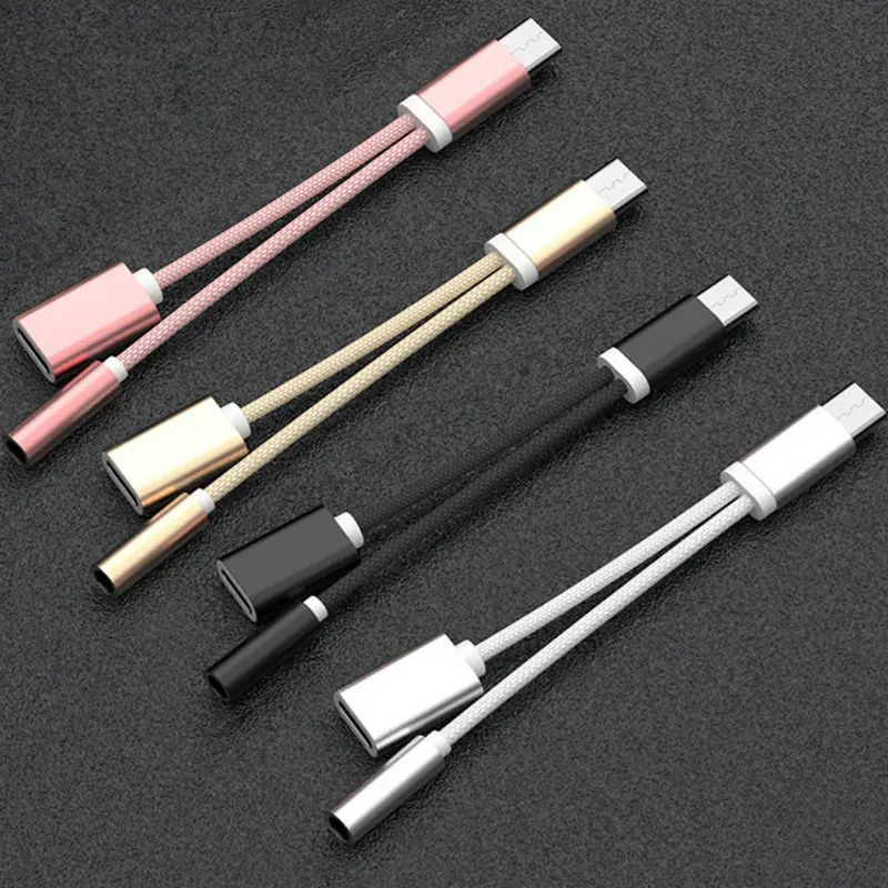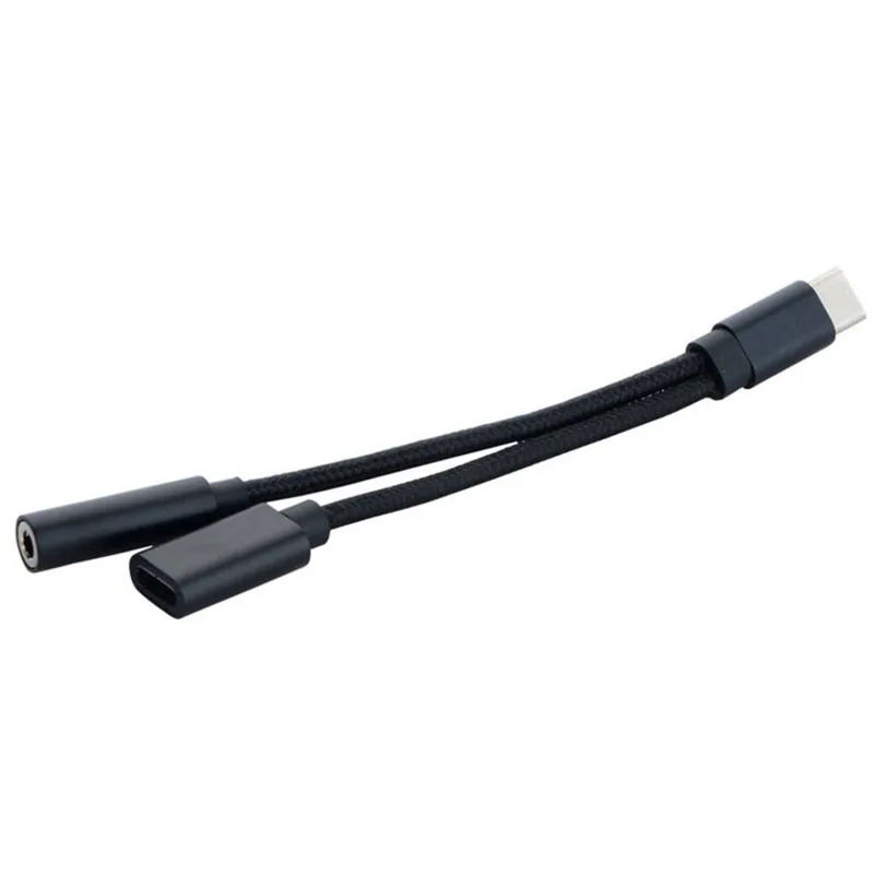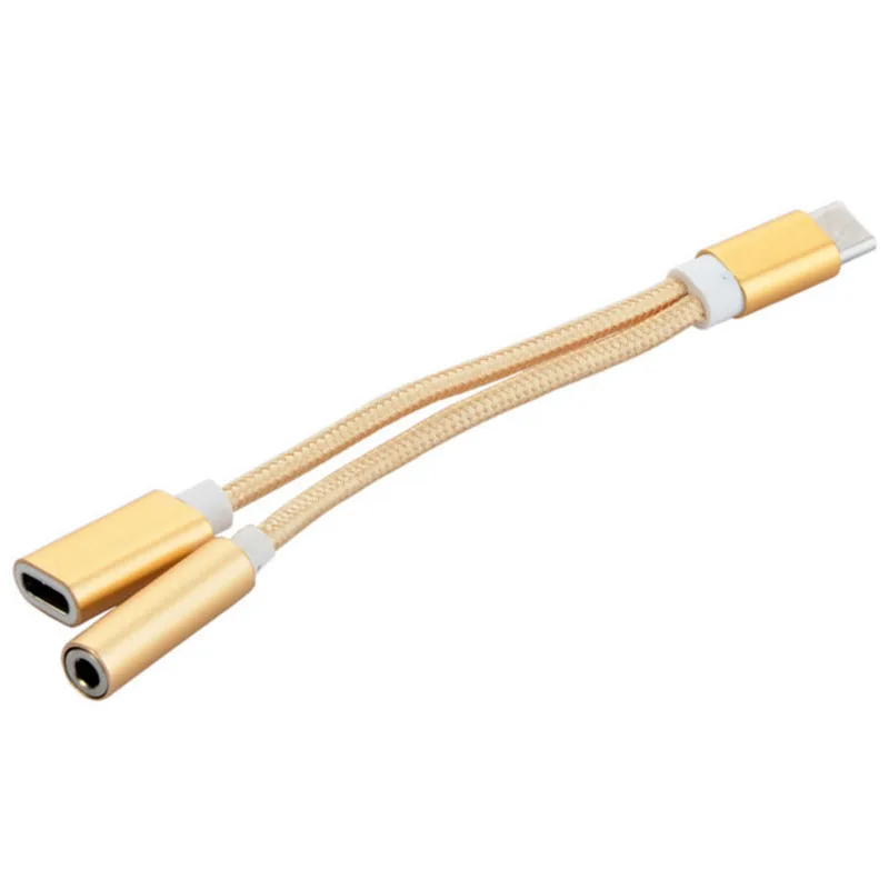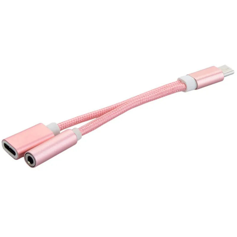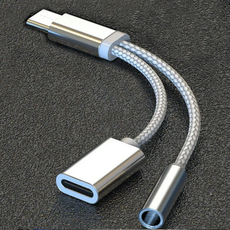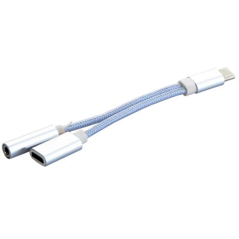 2 in 1 Nylon Weave Female Convertor:USB Type-C Cable to 3.5mm Earphone Adapter