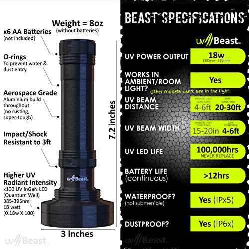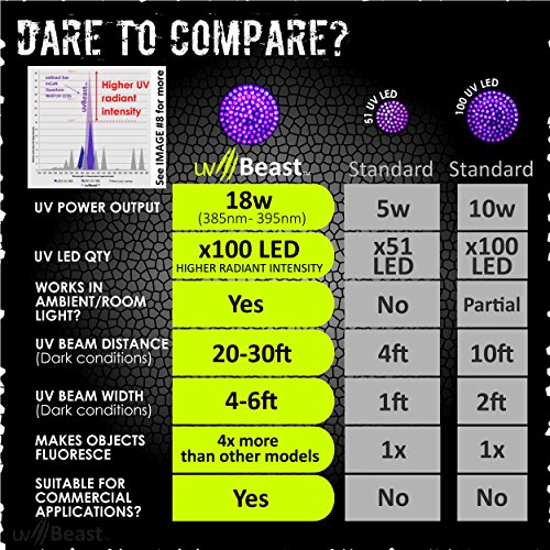 uvBeast UV Black Light Flashlight, 100 LED with 30-feet Flood Effect