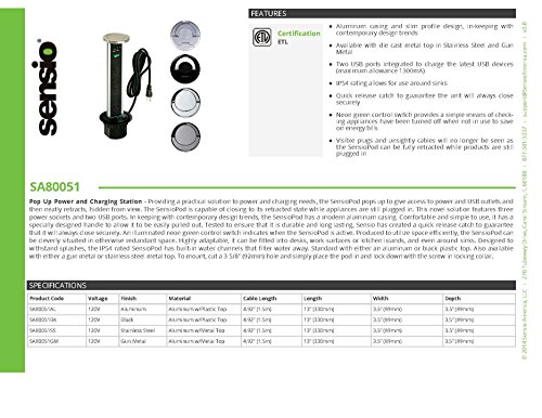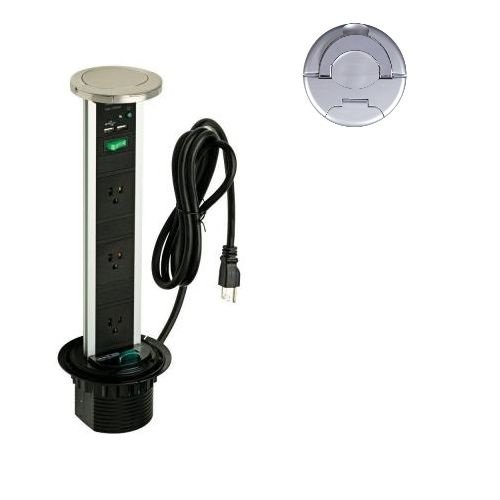 Transolid SA80051AL Sensio Pop Up Power & Charging Station with 3-Socket & 2-Usb Outlet Made of Aluminum