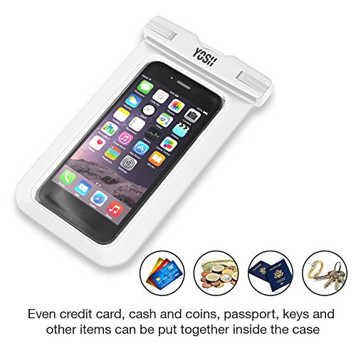 √ One Case Meets All the Needs The versatile YOSH® Universal Waterproof Case Bag fits all devices up to six inches diagonal, including Smartphones, iPhone 6s, iPhone 6s Plus, 6 Plus, Samsung Galaxy S6, Sony, HTC, LG, Motorola, Nokia, and Blackberry. The universal size is perfect for cross-device user and the spacious interior allows you to carry cash, credit cards, and/or your ID.