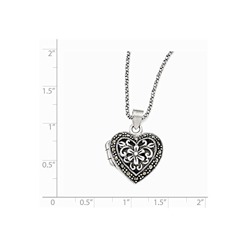 Solid 925 Sterling Silver Marcasite Heart Locket with Chain Bracelet Necklace (19mm)