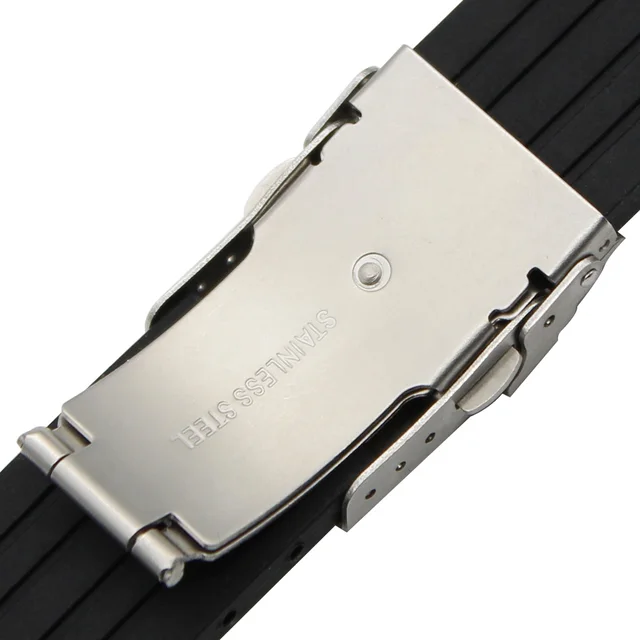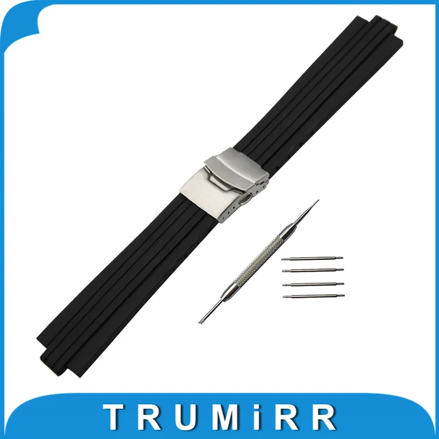 | [해외]10 미리메터 x 23 미리메터 실리콘 고무 시계 밴드 볼록 인터페이스 손목 스테인레스 안전 버클 스트랩 손목 벨트 팔찌 + 봄 바 |