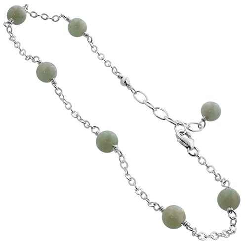 -. Title : Gem Avenue Sterling Silver Simulated Jade Adjustable Anklet