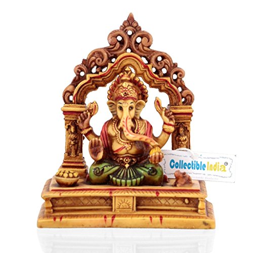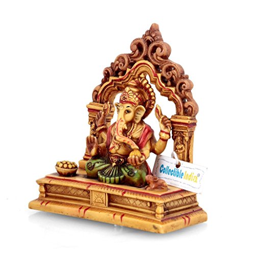 CraftVatika Marble Ganesha Statue Handpainted Hindu God Ganesh Murti Stone Sculpture Idol Decorations For Home | Gifts For Wedding Home Decor Ceremony and Anniversary |