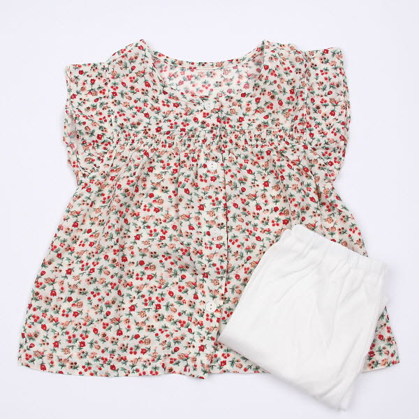 잔잔하고 예쁜 꽃무늬가 더욱 여성스러운 디자인의 실내상하복입니다.