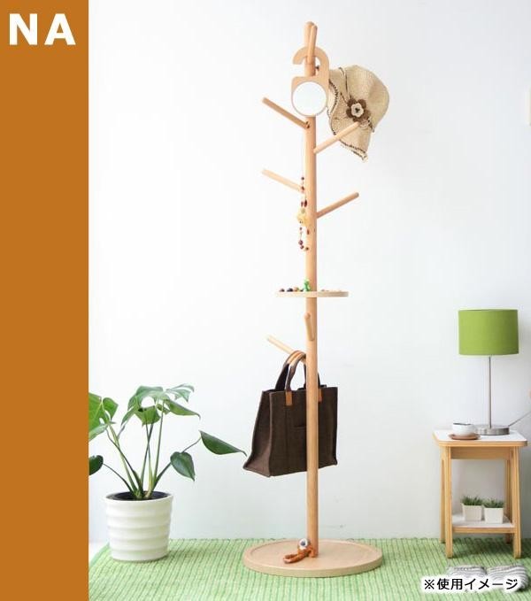 | 木をモチーフにしたコートハンガー。木素材が優しい雰囲気をインテリアにプラスします♪中央の円形トレーには、時計やアクセサリーなど出掛ける際に忘れがちなちょっとした小物が収納できます。 |