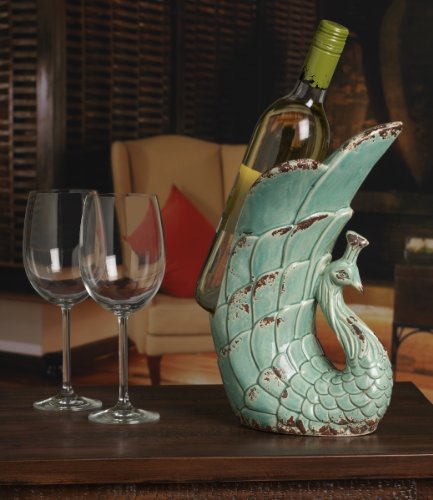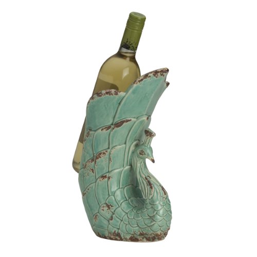Bombay Rustic Ceramic Peacock Wine Holder (12-Inch, Teal)