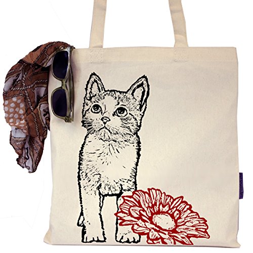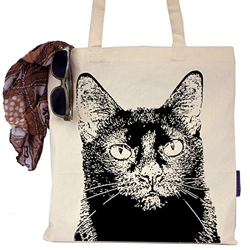 [Description] Eco-Friendly 100% Cotton Tote Bag! Hand printed with original artwork by Pet Studio Art! Measures 14in x 15in (flat). Easy to clean: hand wash cold_ hang dry. Perfect for carrying pet snacks and treats! Show off your kitty love with this adorable tote!