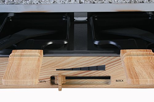 ★ The set includes one Reversible Cast Aluminum Grill Plate (18.3" X 9.2"), one High Density Granite Grill Stone (18.3" X 9.2"), eight raclette dish holders with wood pattern heat resistant handles and eight spatulas