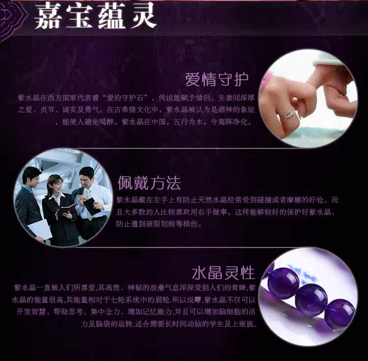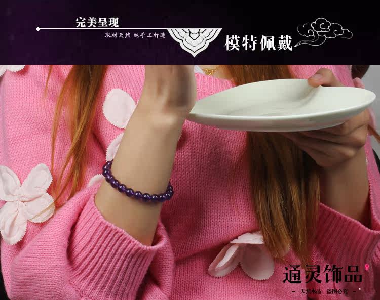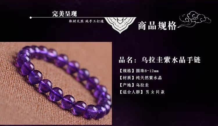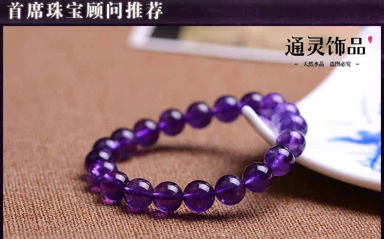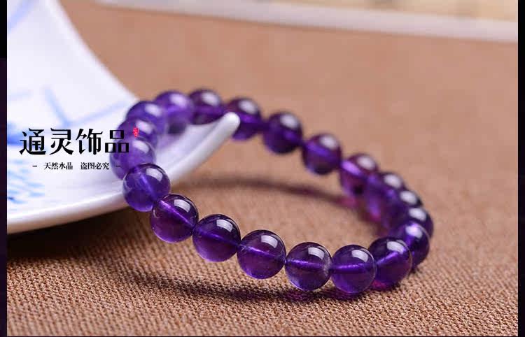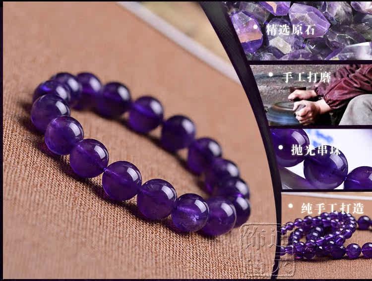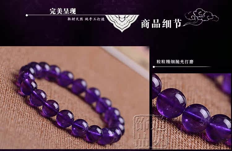 纯天然紫水晶手链乌拉圭深紫 情侣单圈手串时尚男女饰品生日礼物