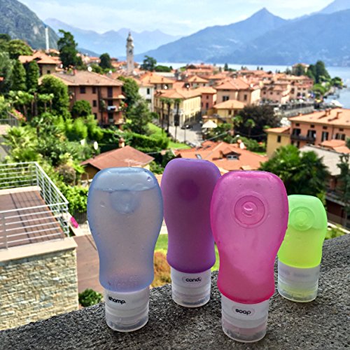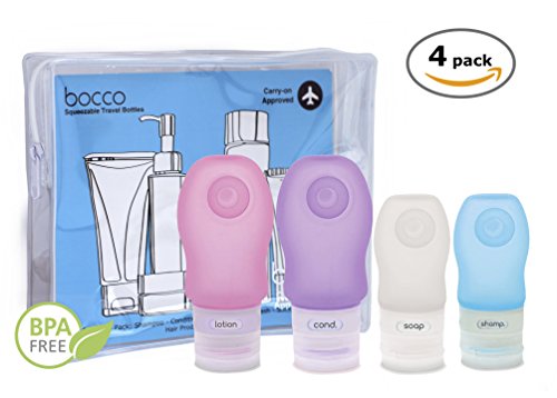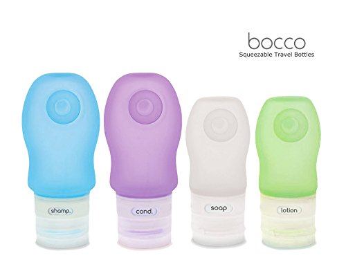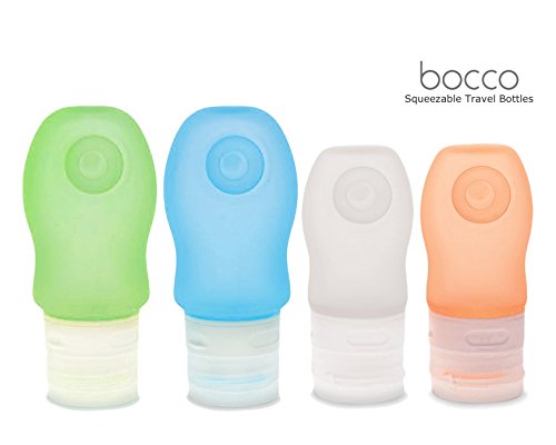 -. Feature : This 4 Pack Includes 2 Small (1.25 oz/37 ml) and 2 Medium (2 oz/60 ml) Bottles. Bocco Bottles are available in 3 Sizes: SMALL (1.25 oz/37 ml), MEDIUM (2 oz/60 ml), LARGE (3 oz/89 ml) - and in 6 Colors: Pink, Purple, Blue, Clear, Green, and Orange. / INNOVATIVE DESIGN: Squeezable Silicone Travel Bottle with Leak Proof Valve Technology, ID Windows, Temporary Suction Cup and Large Opening for Easy Filling. Read product description below for in-depth design description. / EASY TO USE: Squeeze and release to get exactly how much you want without globs of excess oozing out. Works great with low or medium viscosity fluids such as Shampoo, Conditioner, Body Wash, Sunscreen and Lotions. Not recommended for oil-based products or products containing silicone. / SAFE & DURABLE: TSA Approved Carry On Travel Size Bottles. Specially designed to prevent leakage during altitude pressure changes. / GREAT GIFT IDEA for Friends & Family: Fill them up with your Favorite Toiletries to bring along to the Gym, Work, Camping or in you Purse. Can also be used around the Kitchen to store Sauces or Baby Food. (100% Food Grade Silicone - BPA Free and FDA Approved)