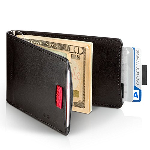 Experience a wallet distilled to its essentials: The Wally Bifold features a unique pull-tab design with interior money clip. This simplified construction eliminates excess materials that lead to bulky wallets, so you can carry up to 12 cards and US dollar bills in a wallet half the size (literally). WALLY BIFOLD IS SO SLIM: You can carry him comfortably in your front pocket - goodbye, fat-wallet backache! Available in smooth "Ninja Black" or full-grain "Cowboy Brown" genuine leather.Feature