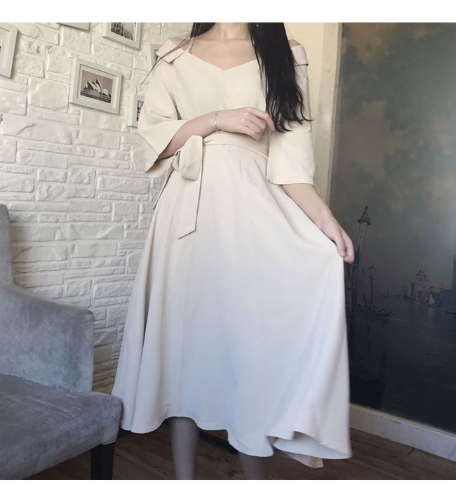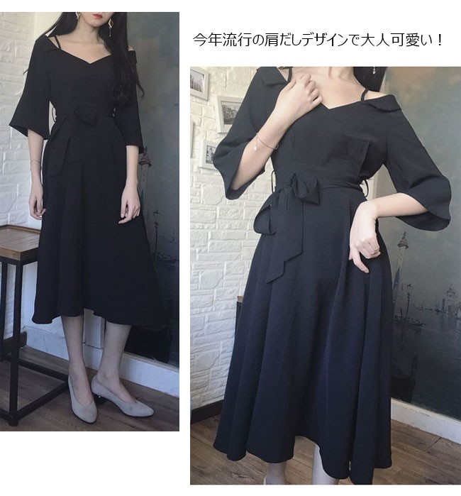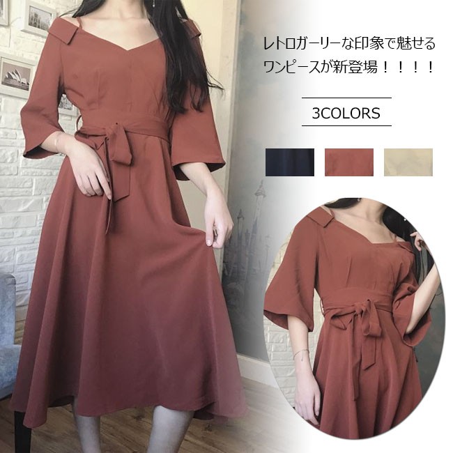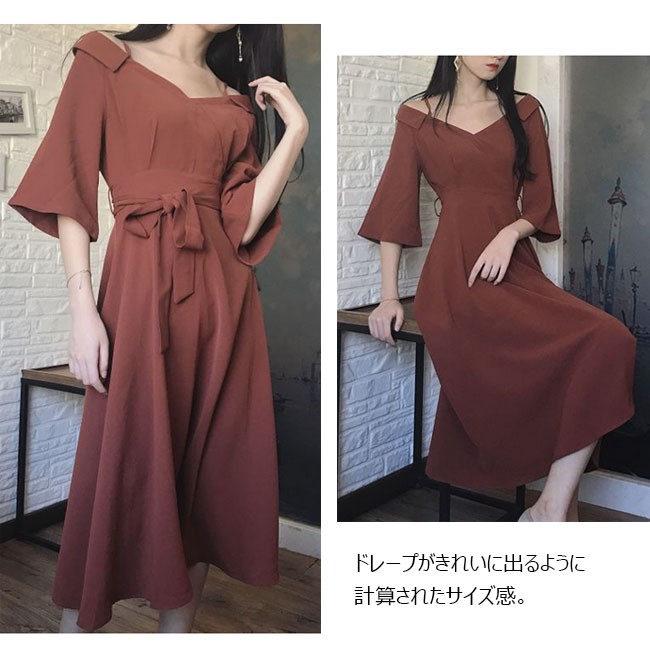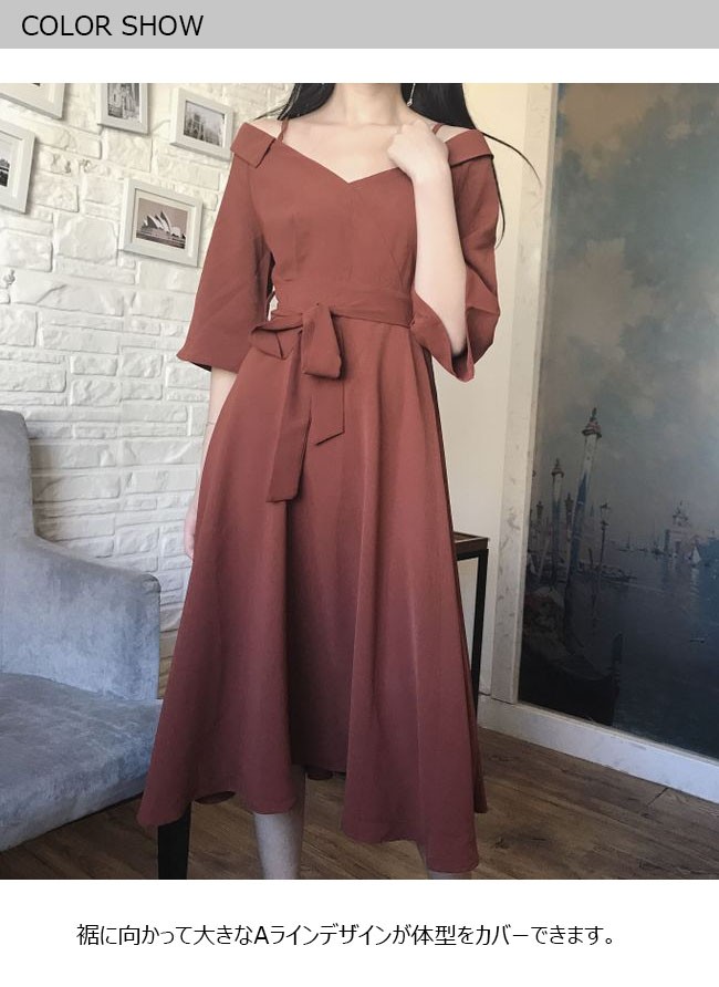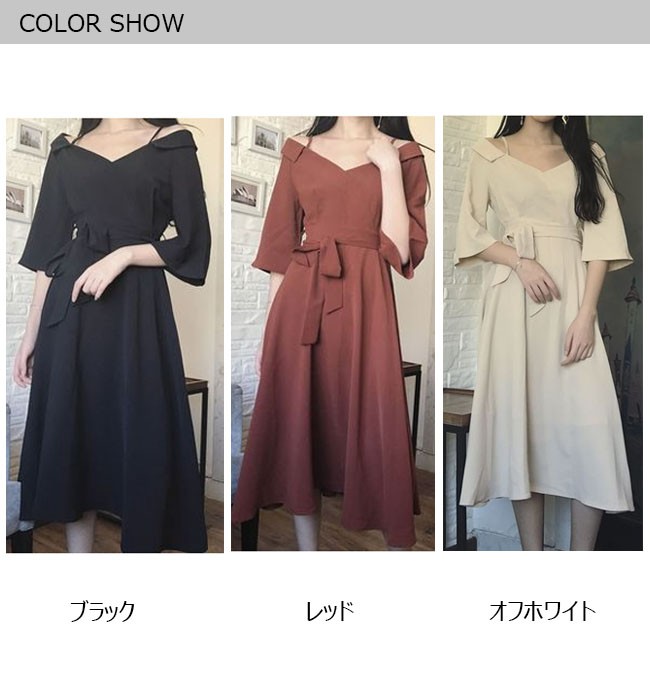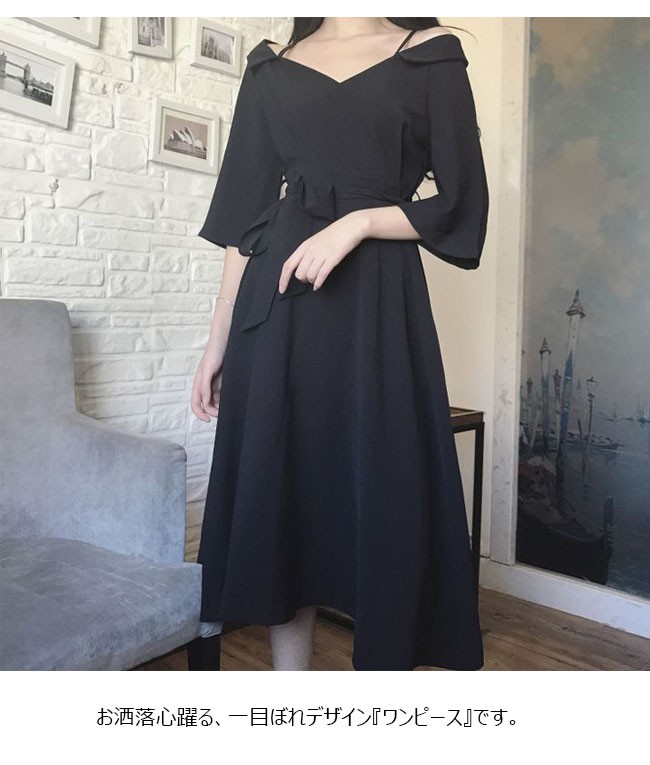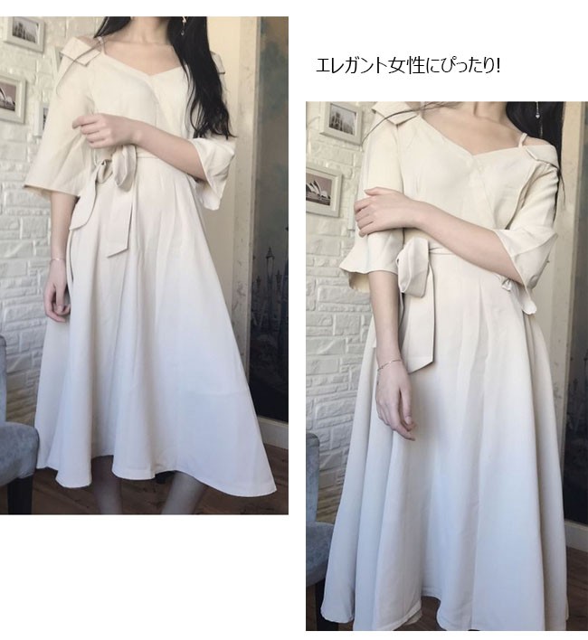 | 商品名 | ワンピース オフショルダーワンピース 七分袖ワンピース レディース Vネック マキシワンピ ロングドレス パーティードレス レディース ロング丈 肩だし Aライン フレア |