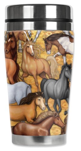 Mugzie Wild Horses Travel Mug with Insulated Wetsuit Cover, 16 oz, Black