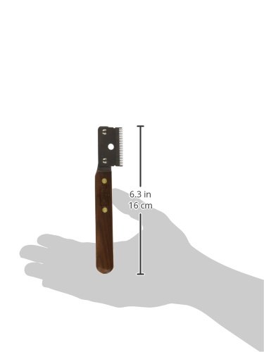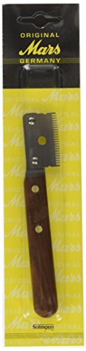 Stripping knife ground FOR LEFTHANDED PEOPLE This stripping knife is manufactured with a handle made from native ash wood (heat-treated) and rust free, tempered high-grade steel. With regards to sustainability, this blade is manufactured to be changeable. The blade offers a further improvement. With conventionally produced blades, the teeth are shaped and then tempered, hereby some scale always forms in the gaps between the teeth and consequently the stripping knife is never 100% perfect, i.e. when the residues of scale always hinders the cutting and the gliding through the fur. With our new way of production, the teeth are ground after being tempered and by doing that it is 100% clean! Resulting from that, this stripping knife has double uses. 1, To comb out loose hair, thus it is not cut. The stripping knife is drawn like a comb in the direction of growth through the fur. 2, To snip the topcoat, thus it can cut. As known, pinch the hair to be cut in portions with the thumb over the blade and pull away with a lighter turning motion from the dog.Feature