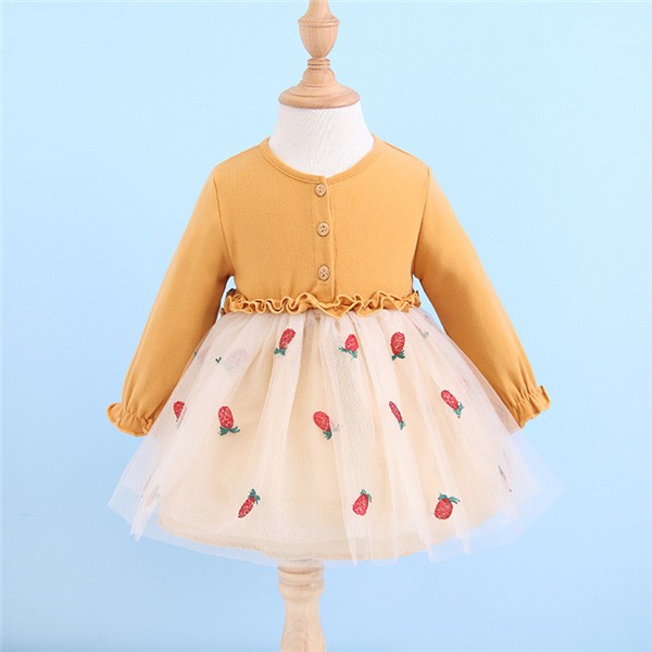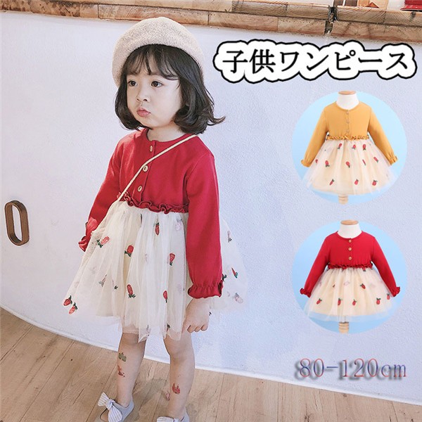ワンピース 子供 長袖 女の子 イチゴ柄 可愛い ベビードレス ガールズ ふわふわ チュール切り替え キッズドレス 七五三 出産祝い 通園 結婚式 入学式 80-120メイン素材:コットンカラー:イエロー レッドサイズ:80cm 90cm 100cm 110cm 120cm綿のトップスに、女子が大好きなふんわりチュールスカートの組み合わせのワンピースです。旅行、通園、発表会などいろいろなシーンで活躍してくれる子供服!七五三、お子様の誕生日、記念日、出産祝いなどにプレゼントにしても良い選択肢です。サイズは、実寸を測っているため多少の誤差はございます。実商品とPC画面では、多少見た目の色に違いがございます。初期不良の場合、未使用の商品のみ到着日から7日以内にご連絡頂ければご返金、交換対応させて頂きます。●商品が到着しましたら、必ず中の商品を確認していただき、商品の到着後、3-4日間以内に必ず弊社までご連絡ください。★いかなる理由であってもご使用後の返品交換は承れません。