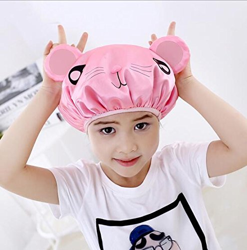(PETMALL)/Oral Care/Toothpaste/DIRECT FROM USA/PETMALL Children Shower Cap Cartoon Waterproof Double Layer Kid's Shower Hat (Pink) OFFICE-712