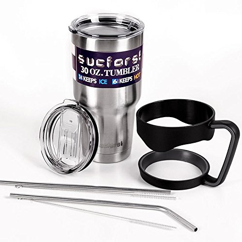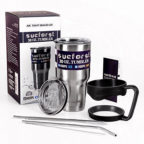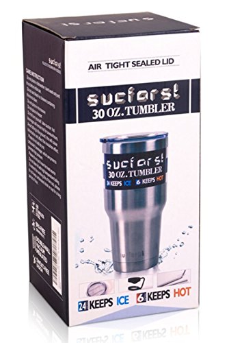-. Feature : • PREMIUM QUALITY - all parts of the SUCFORST cup are manufactured from top grade 30oz 18/8 rust resistant and 18/8 stainless steel body, this includes the double wall, toxin free, high quality materials and the entire interior. The combination of the double wall design with the vacuum lid prevents air from getting in and the elaborate insulation provides the temperature that is desired. It keeps ice beverage cold for over 24 hours and hot drinks warm for 6 hours. / • ECO FRIENDLY AND EXTREME DURABILITY- It is also a green and healthy alternative to cups and plastic bottles. It is reusable thus environmental friendly which reduces waste and saves a lot of money. This mug is also highly durable it can be used for a period of many years. / • SWEAT FREE AND FITS MOST CUP-HOLDERS; the double wall design prevents any heat transfer to the exterior wall. It always maintains its dryness, no more sweat, so it can be held at all times without feeling the temperature of the beverage it contains. This feature greatly saves temperature. It is very comfortable for most cup holders the size and shape of this tumbler is so amazing that it simply fits most cup-holders . / • EASY TO CLEAN; it has a functional, large, wide mouth opening and smooth rounded shape for easy maintenance or care. HAND WASH ONLY- Do not put in dishwasher - Wash with soap and water - Do not use with any chemicals - Do not put in freezer or microwave. / • 100% SATISFACTION GUARANTEED; this tumbler is awesome and amazing, but for the customer's peace of mind and security, there is a full refund within a month. This means you can order with a lot of confidence and if you are not satisfied with the product you can simply return it for a full refund, within a month of buying it, no questions asked.