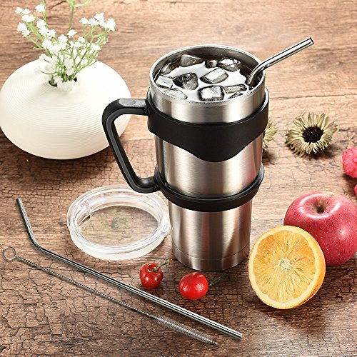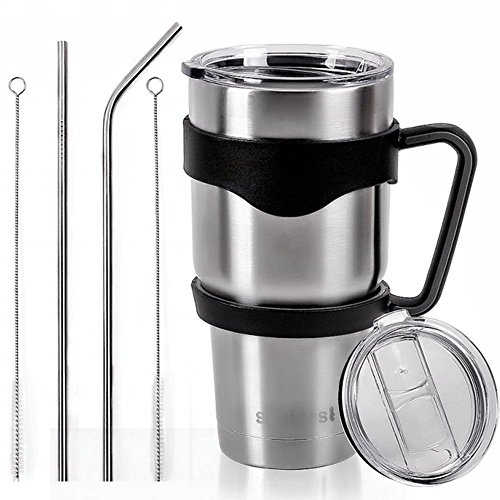 -. Title : SUCFORST 30 oz Stainless Steel Tumbler Cold or Hot Insulation Travel Cup/Mug.Double Wall Vacuum Insulated Tumbler with Handle,Regular and Sliding Lid ,2 Straws ,2 Brushes