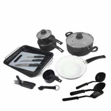 -. Title : Plateau 27pc Durable and Aluminum, Perfect Starter Set for Any Kitchen, Cookware Combo Set - Black