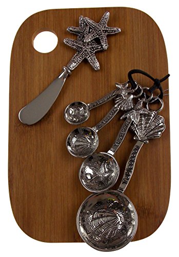 Starfish Cheese Spreader, Shells & Starfish Measuring Spoons Bundled with Bamboo Cheese Board