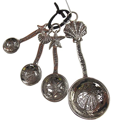 - Shells & Starfish Measuring Spoons are cute with Shells or Starfish handles. Includes 1 Tablespoon, 1 Teaspoon, 1/2 Teaspoon & 1/4 Teaspoon.
